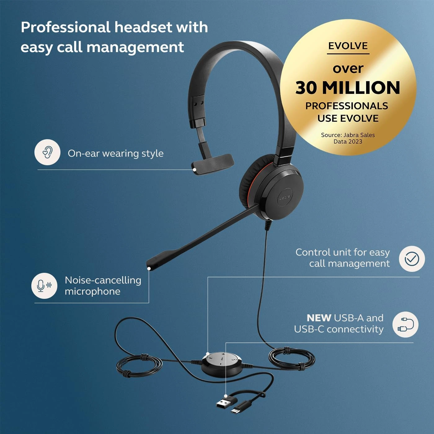 Jabra Evolve 20 SE Mono Headset – USB-C/A